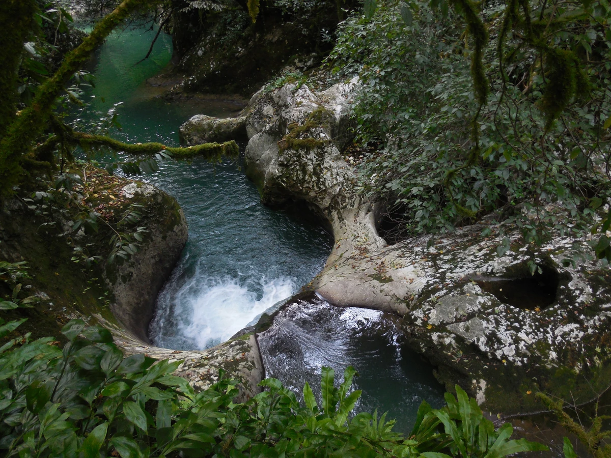 Прогулка по карстовому ущелью с водопадами, заводями и тропинками.