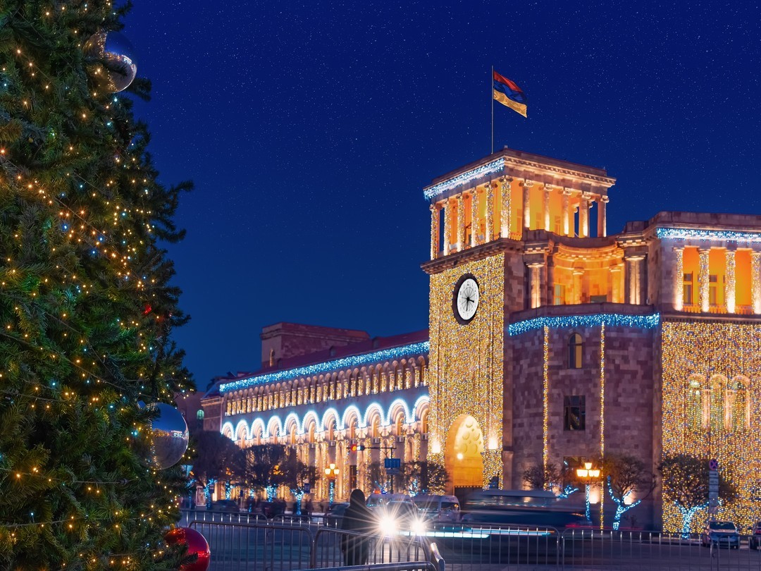 Едем отмечать главный зимний праздник в Ереван — один из древнейших городов, который в конце декабря озаряется тысячами огней и становится ещё более волшебным. У вас будет достаточно времени, чтобы в неспешном темпе познакомиться с сердцем Армении и душевно встретить Новый год. Также мы успеем осмотреть природные красоты и многовековые святыни недалеко от столицы: озеро Севан, храмы Гарни и Гегард, базальтовую Симфонию камней и многое другое.