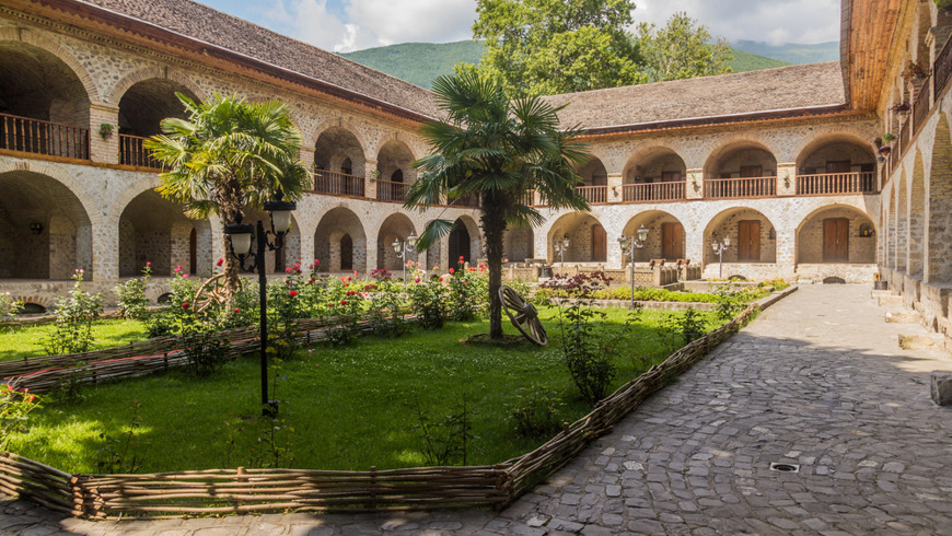 - Мавзолей Дири-Баба Джума Мечеть Винодельня Мейсари Деревня Лагыч Озеро Нохур Водопад семи красавиц Дворец Шекинских ханов Караван-сарай Деревня Киш