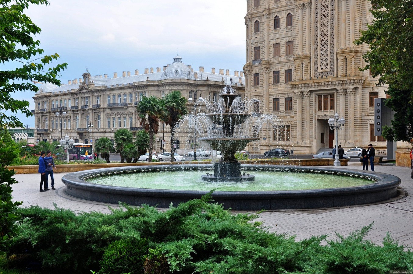- Приморский бульвар — парк-символ столицы, которым гордятся бакинцы. У Международного центра мугама я расскажу об этом национальном музыкальном искусстве, вошедшем в наследие ЮНЕСКО. О традиционном ремесле поговорим и у здания Музея ковра. А гуляя среди экзотических растений (здесь посажены огромные баобабы и кактусы, высокие оливковые деревья и пальмы), вы узнаете о русских ученых, работавших в Азербайджане в начале 20 века, о легендарной затонувшей крепости Сабаил, о племенах хазаров и о людях, побывавших в этих краях — от Марко Поло до Александра Дюма.