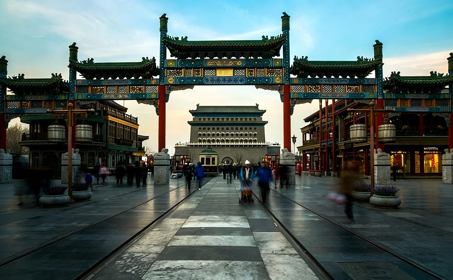 Историческая пешеходная улица к югу от площади Тяньаньмэнь. Здесь сохранилась застройка в стиле эпох Мин и Цин: традиционные фасады, старинные вывески, каменные мостовые.