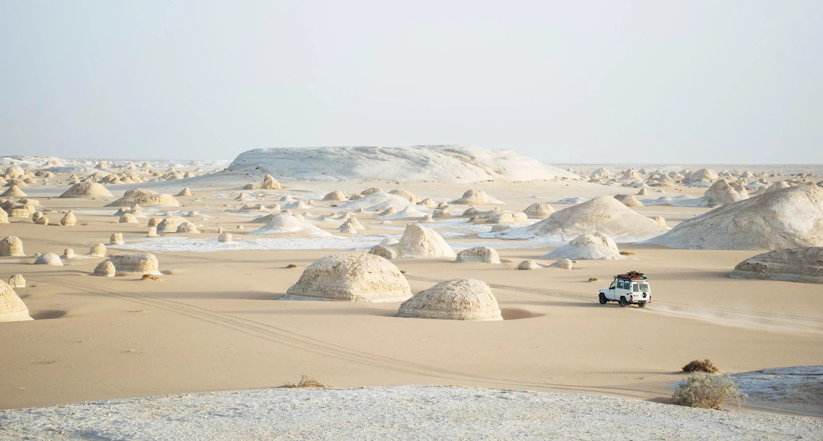Приглашаем вас ненадолго оставить шум Каира и отправиться в сердце Сахары на встречу с сюрреалистическими мирами, созданными лучшим художником и скульптором — природой. Вас ждут максимально контрастные пейзажи: в Белой пустыне — белоснежные карстовые изваяния, причудливо застывшие в форме грибов, птиц, шаров, а в Чёрной — покрытые застывшей лавой и пеплом древнего вулкана Туфу мрачные конусы. Вы сможете стать частью этого фантастического уголка, оставшись ночевать в кемпинге среди дюн. Обратите внимание: это видовая поездка с англоязычным водителем без экскурсионной составляющей.