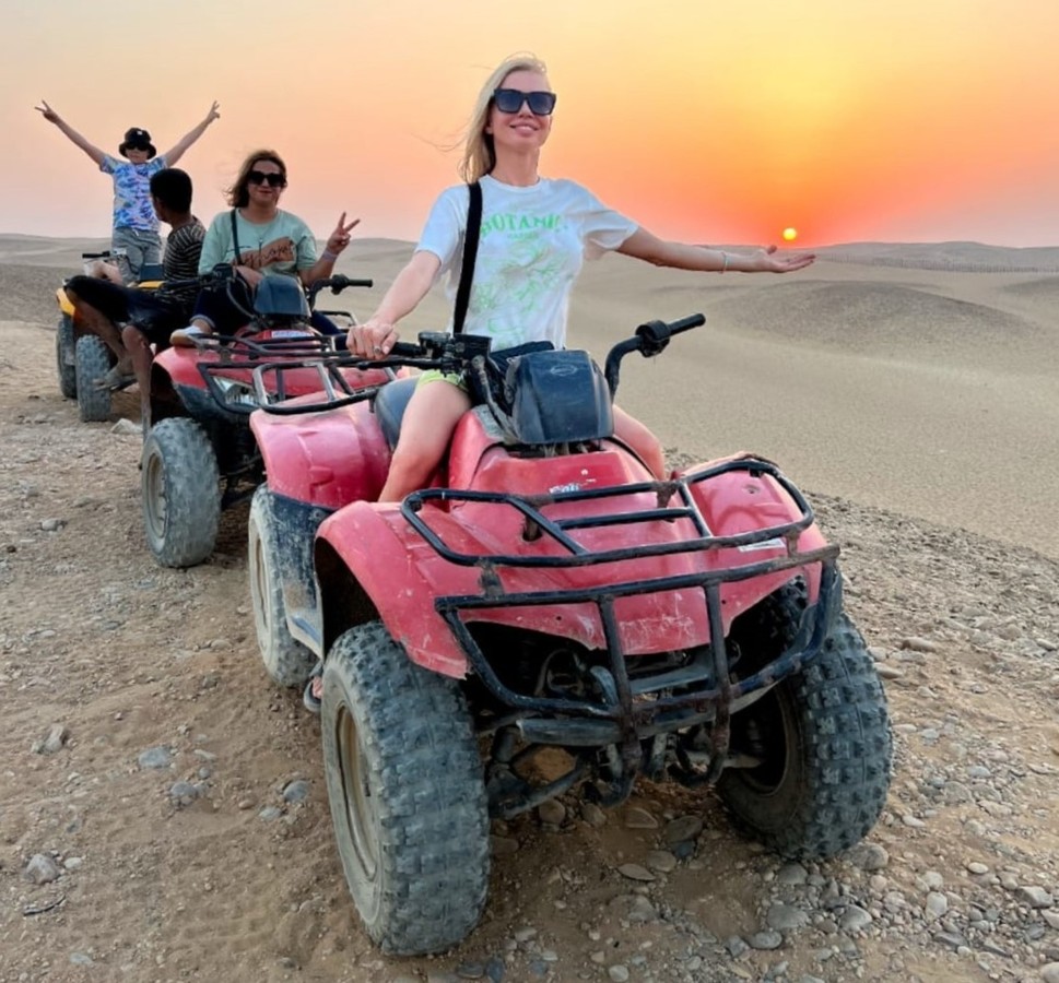 Спасибо большое за эту поездку, комфортное сопровождение, трансфер, организовано все на высшем уровне, нас забрала из отеля гид Инна , и мы отправились на точку, где мы пересели на квадроциклы .Мы с сестрой очень довольны, так как кататься возле пирамид это тот еще экстрим, а закат какой , это не передать словами.Нам подарили подарки и угостили манговым фрэшем.Спасибо вам за оперативную организацию, это были чудесные 2 часа благодаря вашей команде, и до новых встреч.