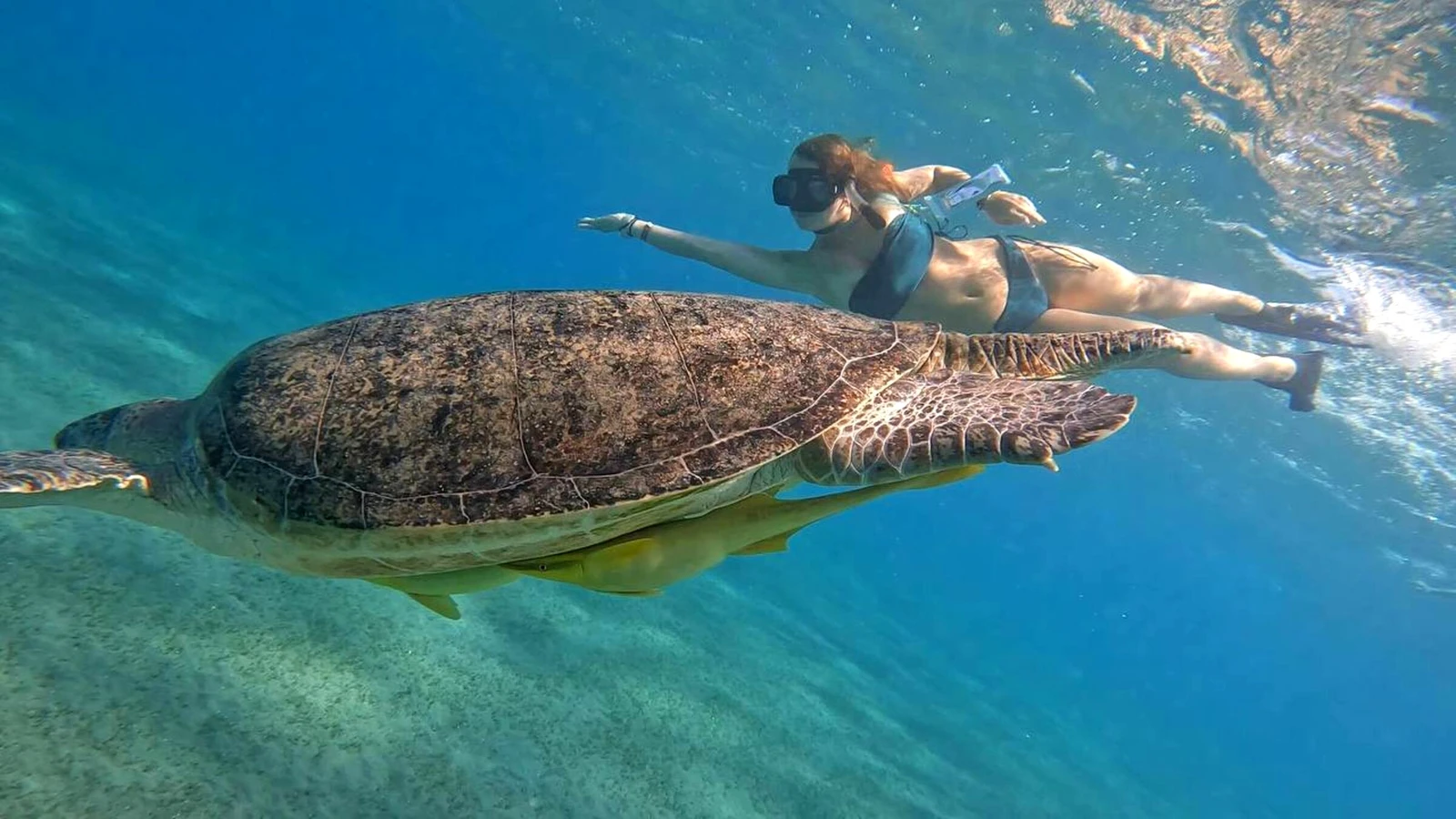 Подготовка и подводное плавание с морскими черепахами в естественной среде. Возможна редкая встреча с дюгонем (морской коровой). Снорклинг проходит несколько заходов, каждый — по 45 минут.