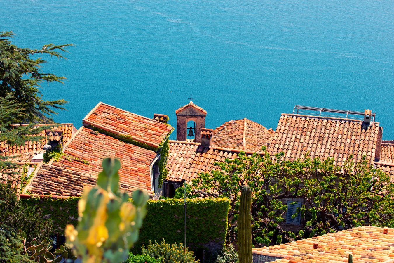 На самой вершине — знаменитый ботанический сад Эза: кактусы, алоэ и редкие растения на фоне одних из самых впечатляющих видов Французской Ривьеры. Здесь море сливается с небом, а городки внизу кажутся игрушечными.
