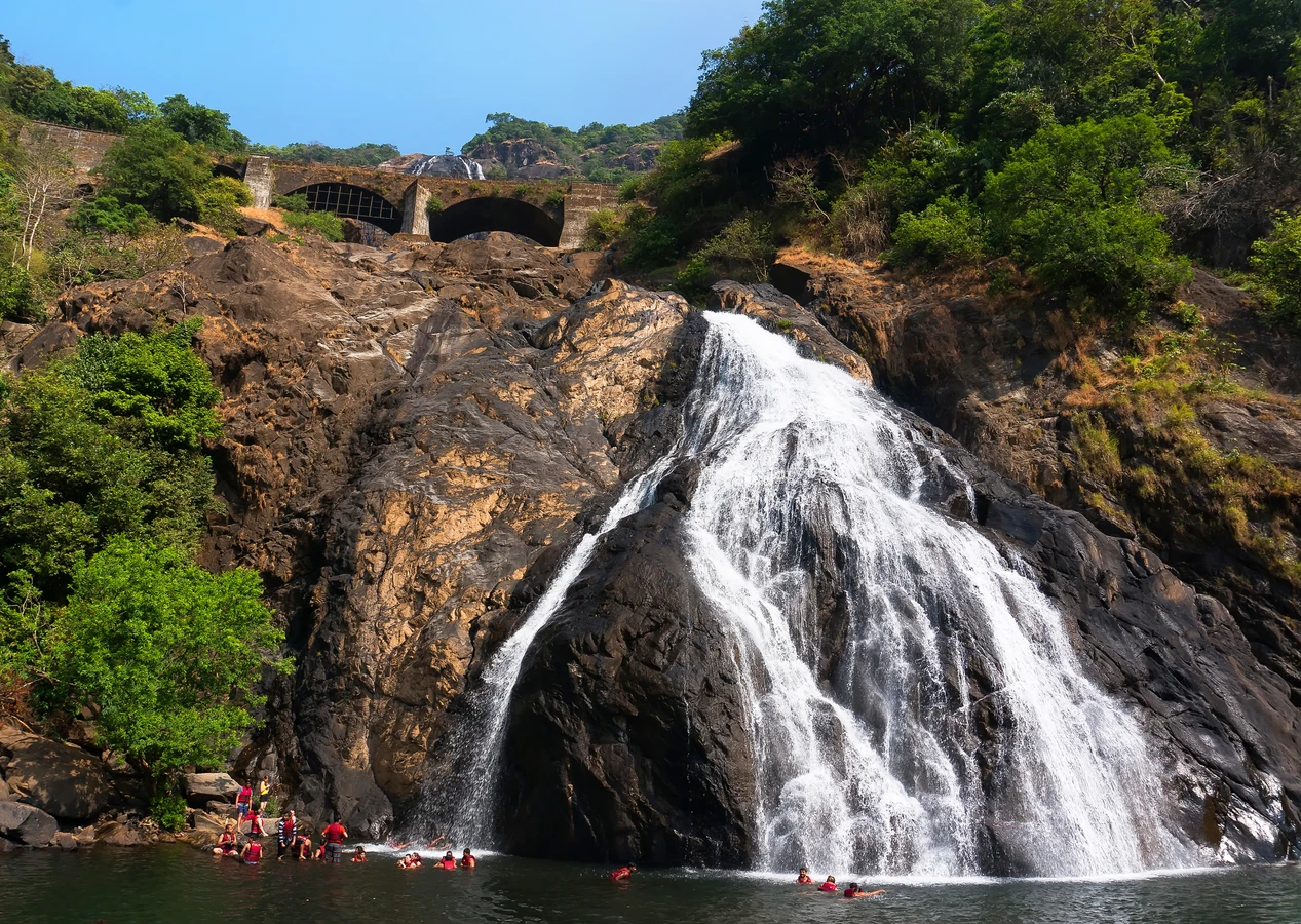 Водопад Дудхсагар — один из самых красивых и мощных в Индии. Он как огромная белая река, которая срывается с гор. У его подножия — священное озеро. При желании вы искупаетесь в кристально чистой воде среди скал.