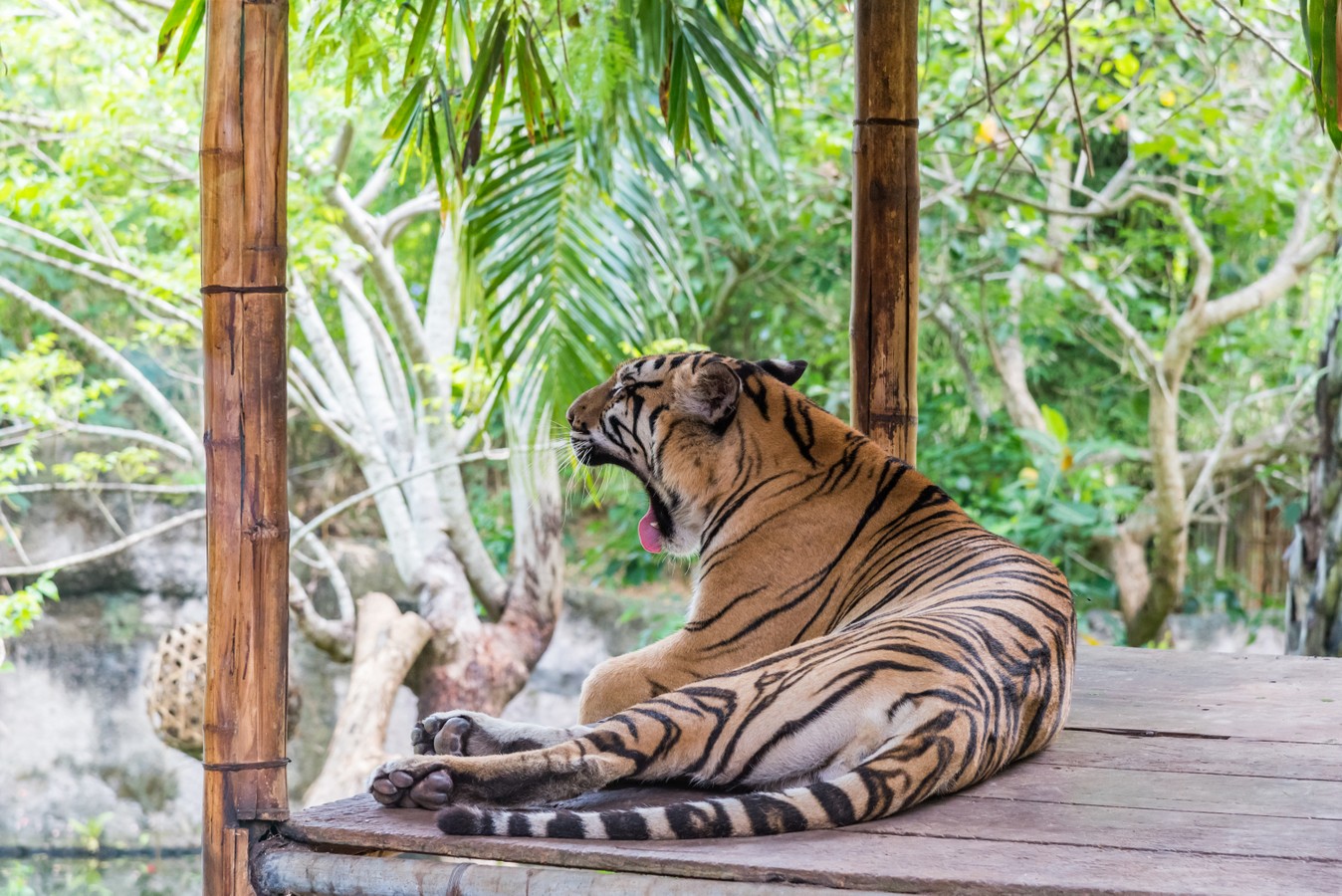 - С близкого расстояния рассмотрите свободно гуляющих там животных: невозмутимых носорогов, увальней-бегемотов, пятнистых оленей, величественных львов, полосатых белых тигров и комодских варанов. Именно последних считают потомками динозавров