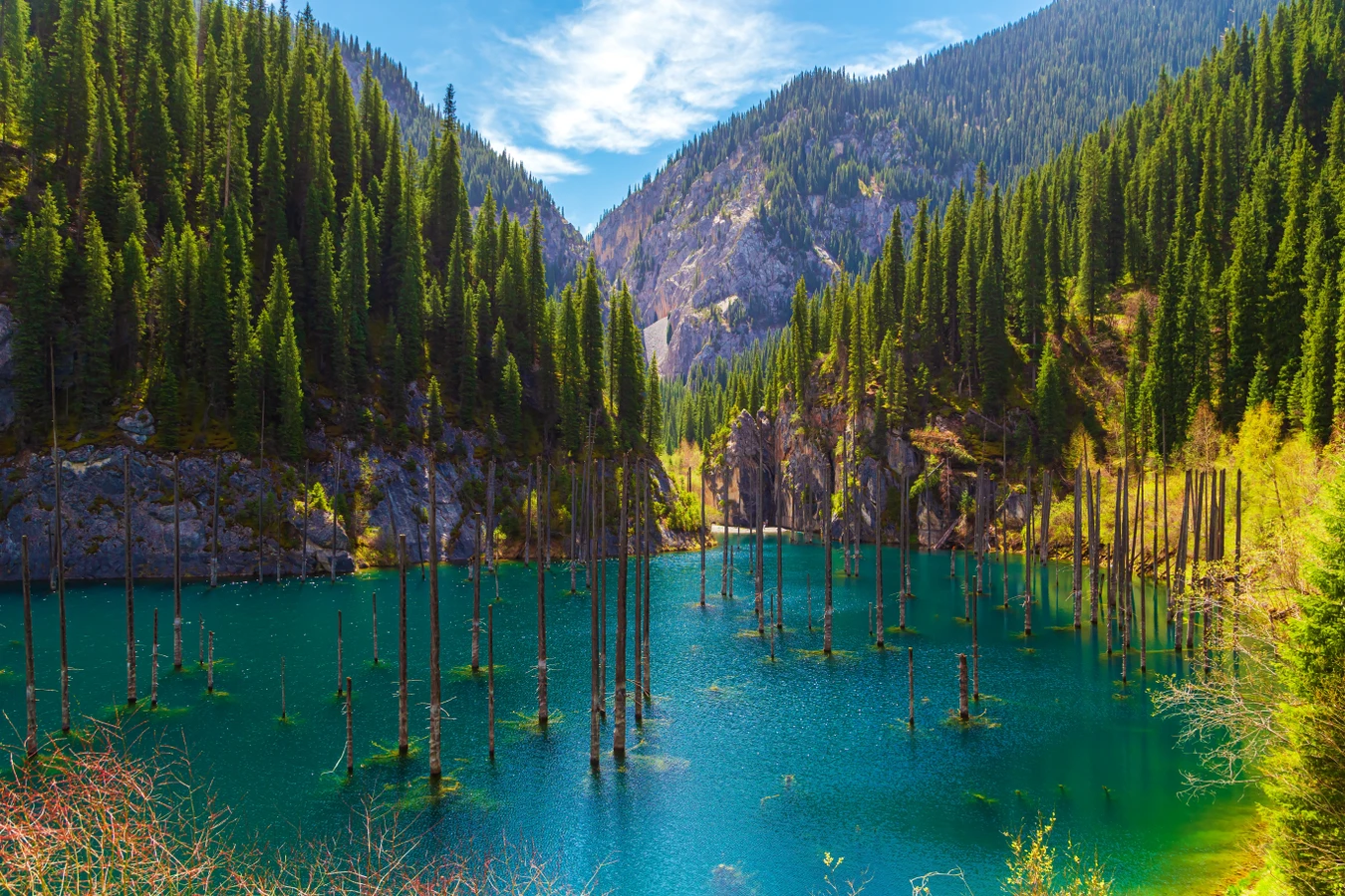 За одно короткое путешествие мы успеем показать вам все ключевые природные достопримечательности региона и прокатиться по «Золотому кольцу Алматы». Здесь есть чему подивиться: белоснежные меловые горы сменяются причудливыми вулканическими образованиями красного цвета, ветер и песчаные дюны умеют петь, а из-под лазури водоёма можно увидеть целый лес! Вы полюбуетесь озёрами Кольсай и Каинды, исследуете Чарынский, Чёрный и Лунный каньоны с необычными формами и ландшафтами. Мы включили в стоимость комфортабельное проживание, большую часть питания и все перемещения по маршруту, чтобы вам не пришлось ни о чём беспокоиться, самостоятельно продумывать маршрут и подбирать транспорт. Уровень активность и продолжительность прогулок будет зависеть от вашего желания, мы скорректируем программу под ваши запросы.
