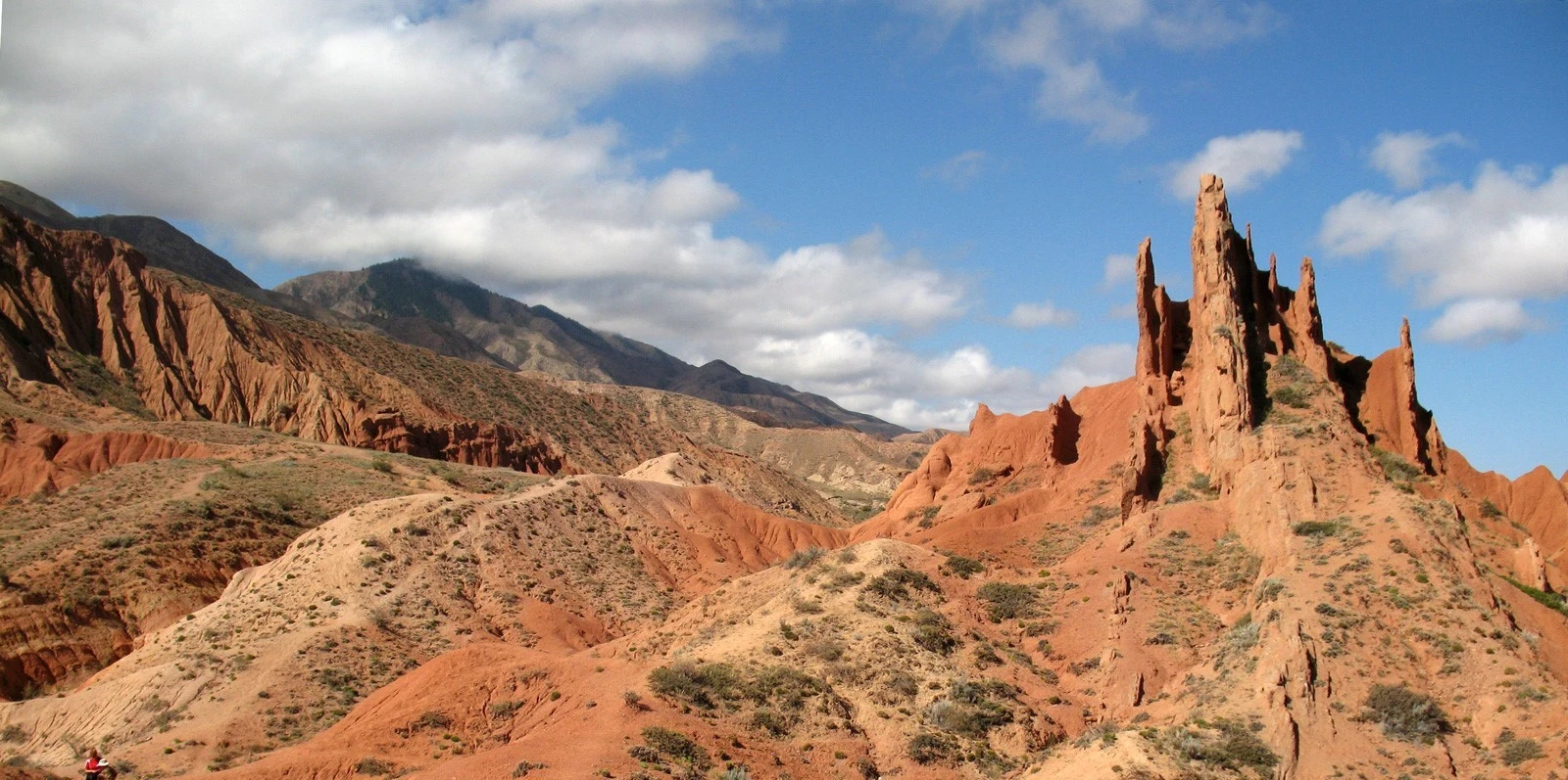 На обед нас ждёт ашлямфу по-каракольски. Продегустировав национальное блюдо уйгуров и дунган, поедем в ущелье Джеты-Огуз. Полюбуемся красными скалами Разбитое сердце и Семь быков.