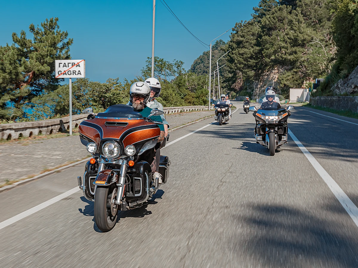 Мы заберём вас от места проживания и сразу отправимся на границу с Абхазией. Мотоциклы проходят границу без очереди, поэтому мы не застрянем надолго.