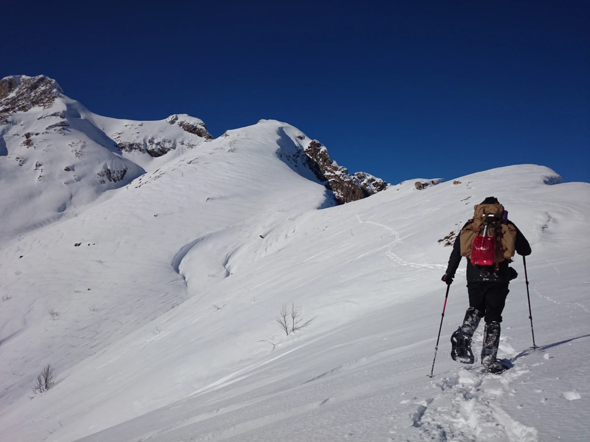 - Мы предоставим вам всё необходимое снаряжение: снегоступы, треккинговые палки, рюкзак для личных вещей, коврик-сидушку, лавинный датчик (биппер), лавинный щуп и лопату. Горячий чай также входит в стоимость.