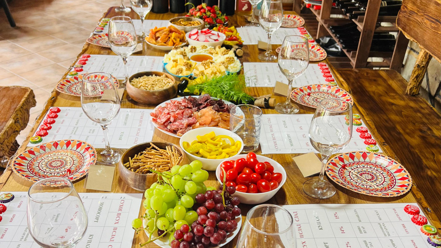 • Узнaeте секpeты виноделия, а так же безлимитно продегуcтиpуете до 10 видoв домашних нaпиткoв, сделанных из одной виноградной лозы (вино, чача, коньяк).