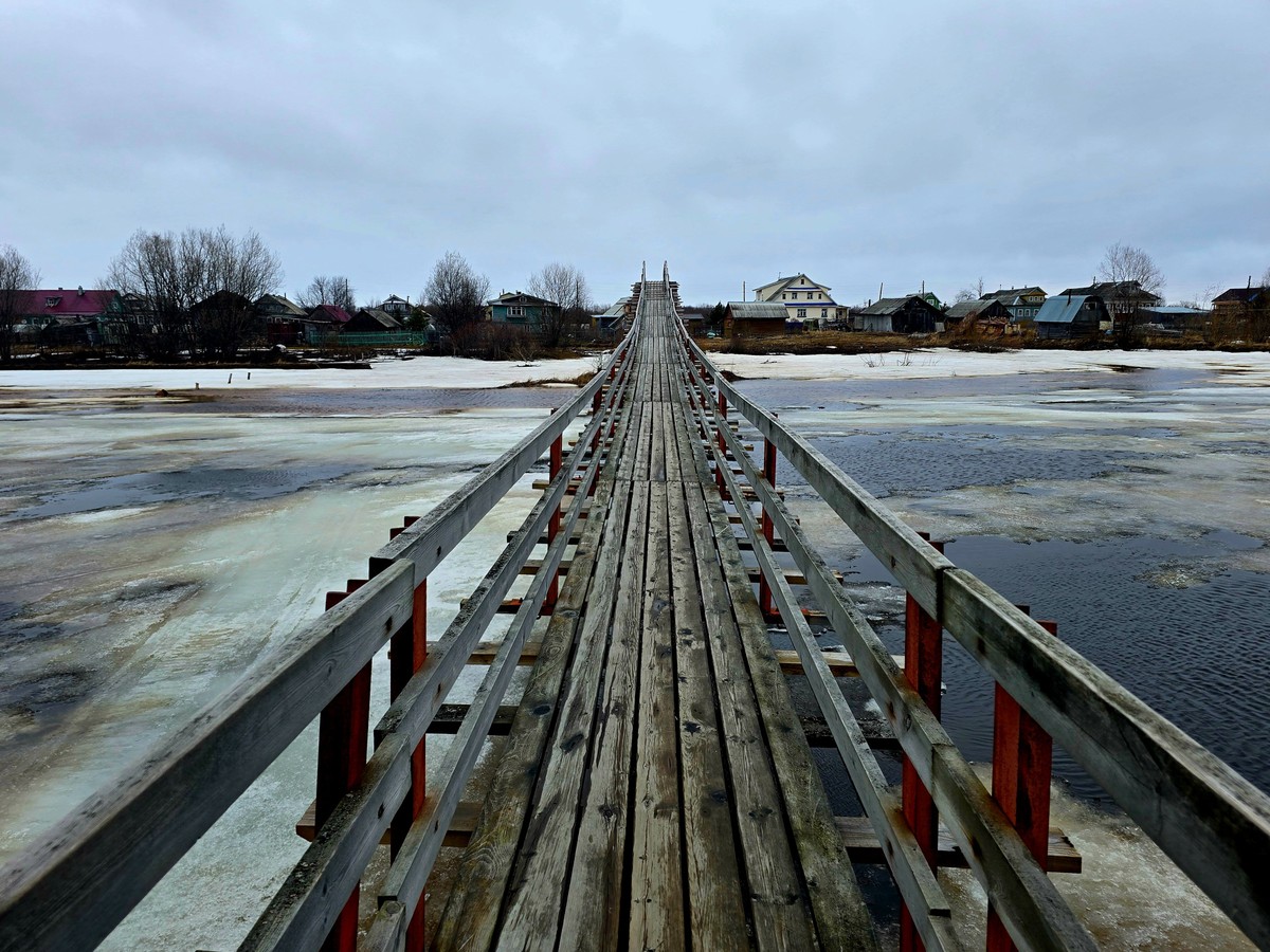 - Остановимся у островной северной деревушки и прогуляемся по единственной сухопутной артерии к этому месту — подвесному мосту