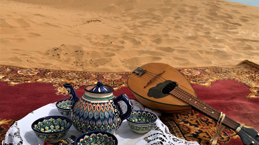 - изюминкой нашего путешествия является ЗАВТРАК НА БАРХАНЕ с кайнарами или баурсаками и восточными сладостями на ковре, по Вашему желанию чаепитие с плюшками можем перенести на соленое озеро;