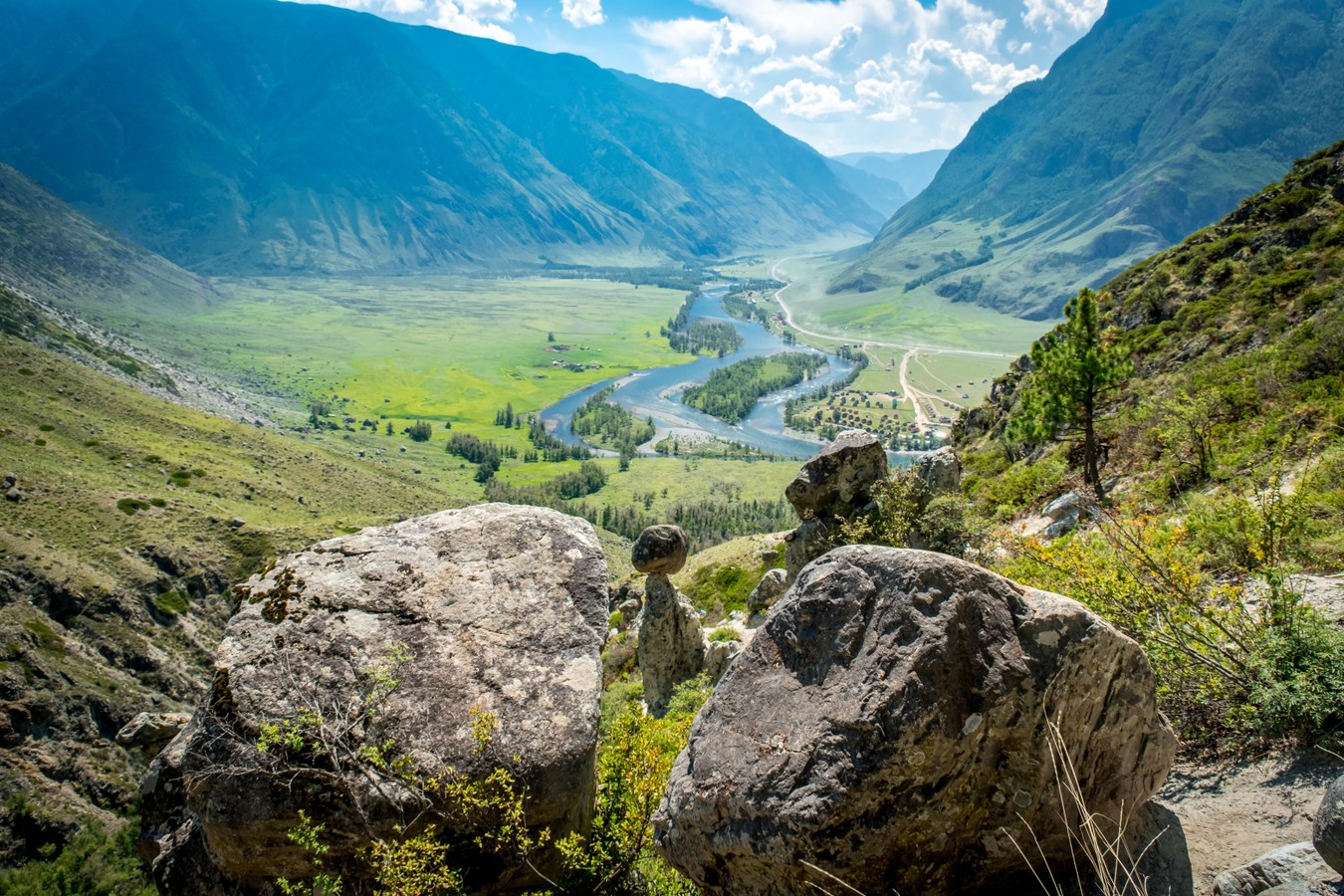 Приглашаем в короткое, но насыщенное путешествие по Алтаю. Будем жить вблизи Телецкого озера, любоваться горными хребтами и дышать чистым воздухом. Вы увидите удивительные Каменные грибы — путь до них ждёт непростой, но он того стоит! Сначала рассечём водную гладь озера на катере, потом промчим по бездорожью на УАЗике, а затем пешком поднимемся к останцам необычной формы. Ещё полюбуемся Телецкими водопадами, а желающие смогут по канатной дороге подняться на гору Кокуя, чтобы полюбоваться бескрайней тайгой и рекой Бия.