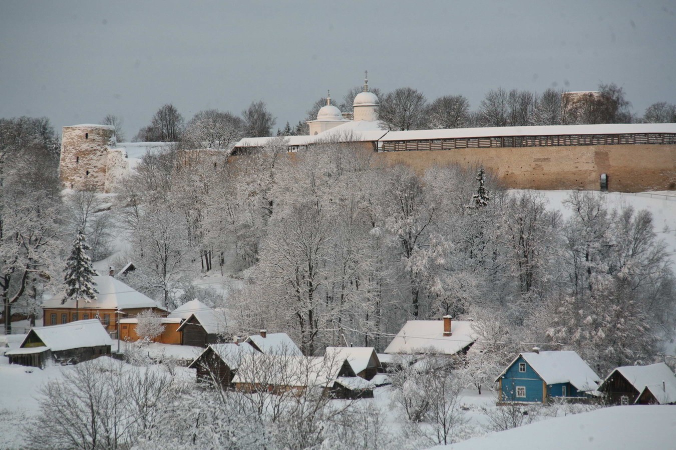 Экскурсия по Изборску — всегда небольшой поход. У нас нет асфальта и довольно крутые спуски — выбирайте обувь с цепкой подошвой, которую не жалко промочить или испачкать. Зимой и в межсезонье одевайтесь как можно теплее — вы едете в деревню. Погреться или переждать непогоду на маршруте негде, это возможно до или сразу после экскурсии.
