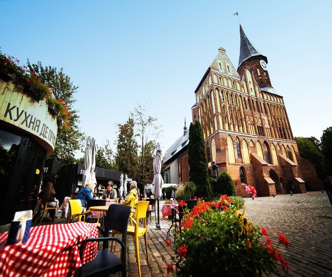- Остров Канта. Дойдём до острова Кнайпхоф, где вы оцените величие Кафедрального собора 14 века и посетите могилу Канта