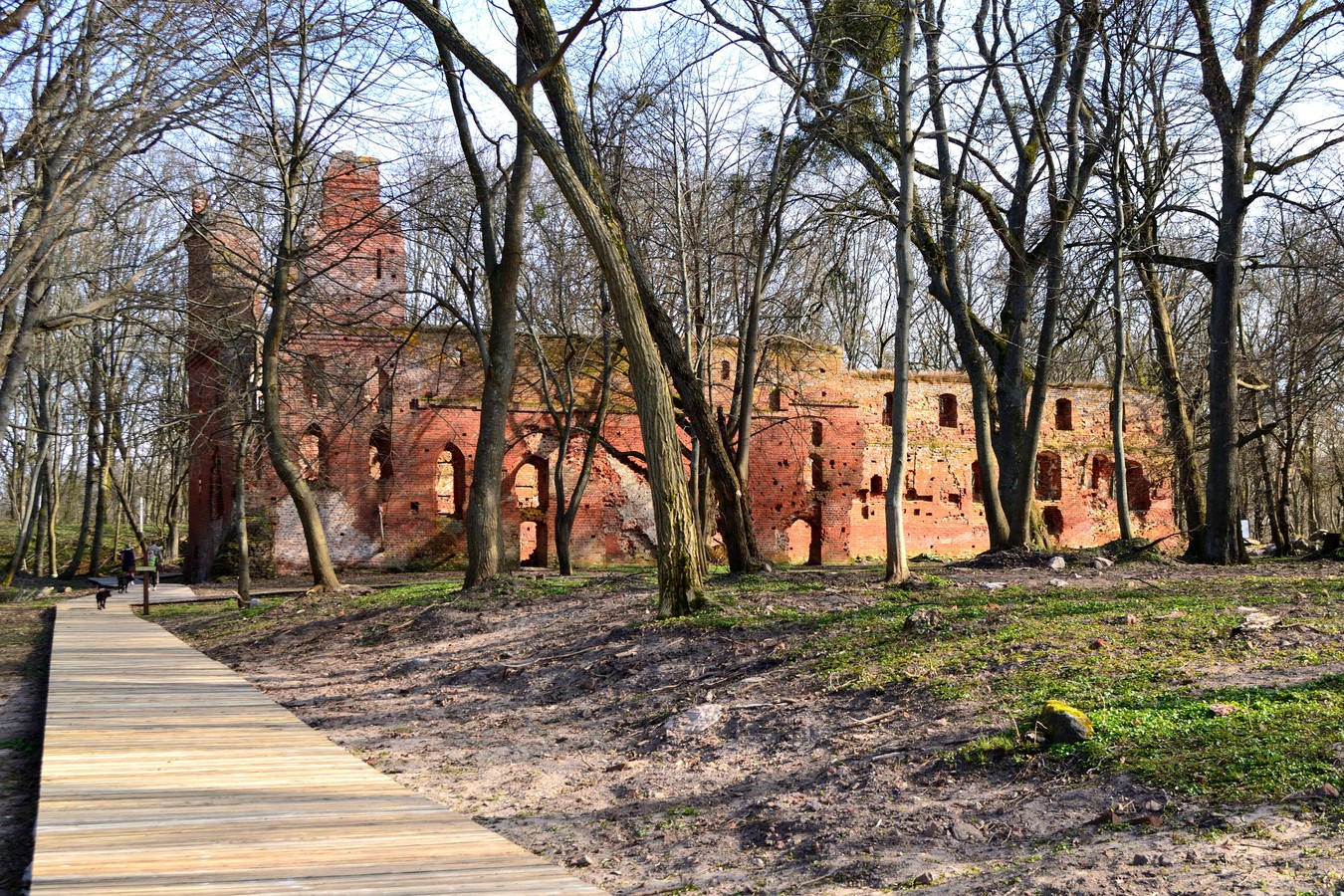 После музея выдвинемся в сторону первого замка на территории нынешней Калининградской области, построенного Тевтонским орденом в 13 веке, — Бальга. Здесь сохранились развалины башни, руины форбурга и кирхи. Мы спустимся на берег залива, изучим остатки набережной. Я расскажу вам легенду о Янтарной комнате, которую чёрные кладоискатели до сих пор ищут в местных подвалах.