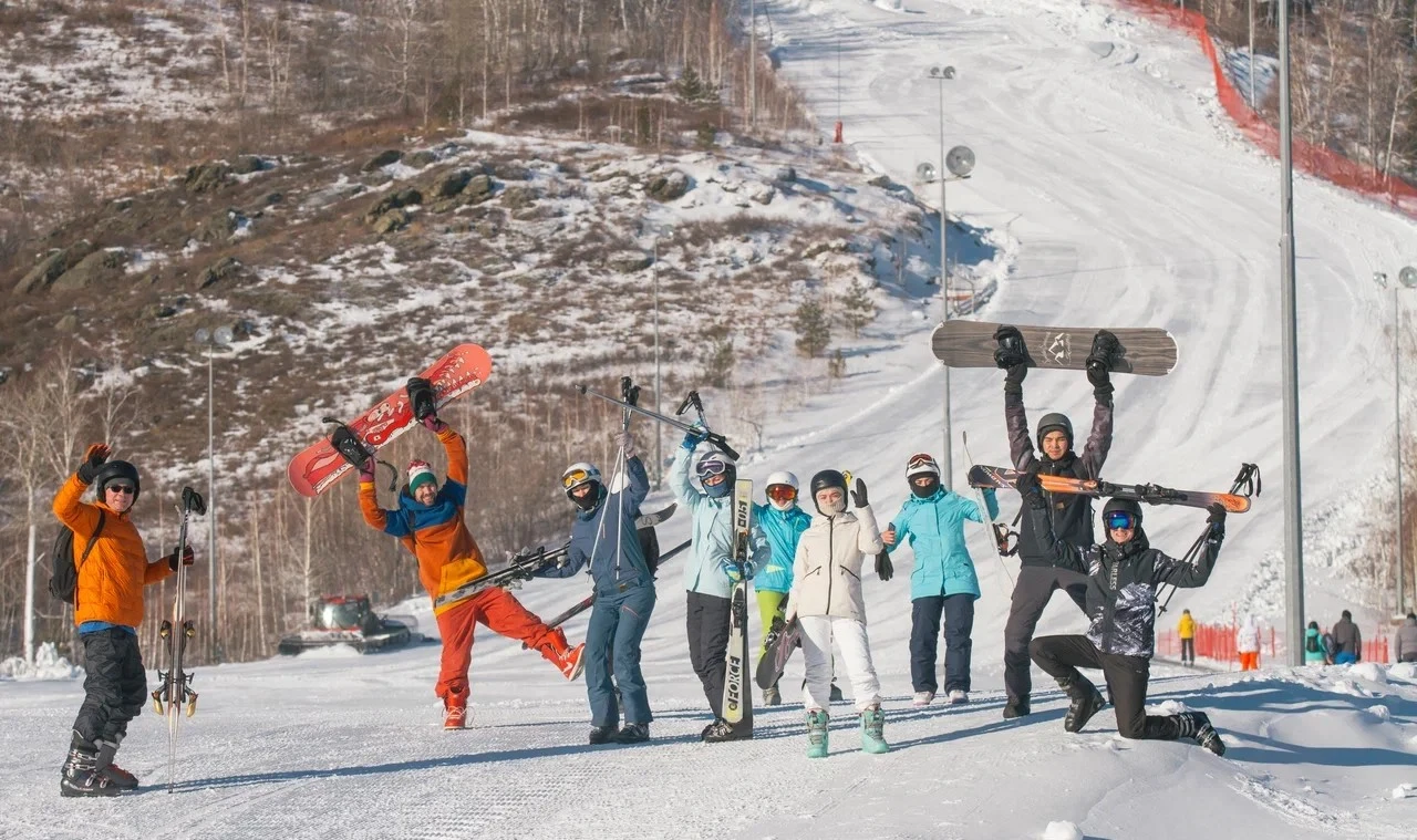 - Инвентарь для катания, можно арендовать на месте на ГЛЦ или в Казани у наших партнеров. Лыжи/борд/ботинки/шлем/защита/маска/палки