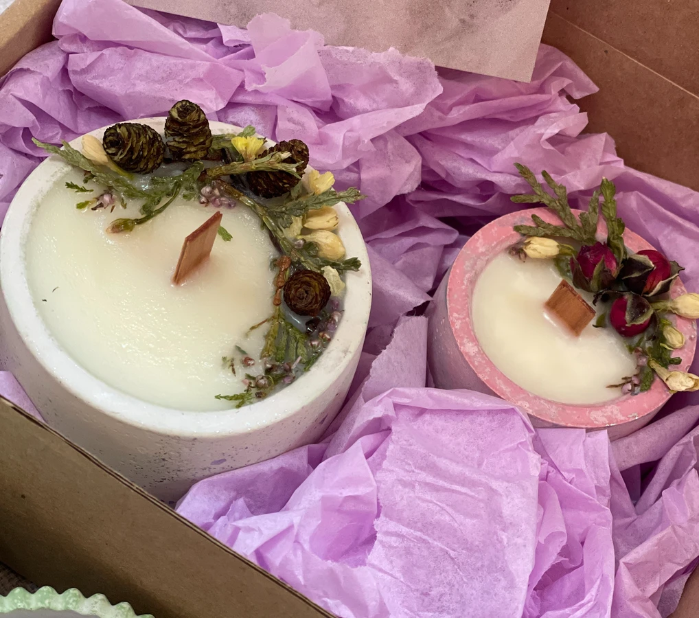 Пока застывает ваша основная свеча, вы успеете украсить сухоцветами еще одну маленькую (подарок от мастерской). В конце мастер-класса у каждого участника будет 2 свечи с сухоцветами, упакованные в коробку с лентой и бумагой тишью.