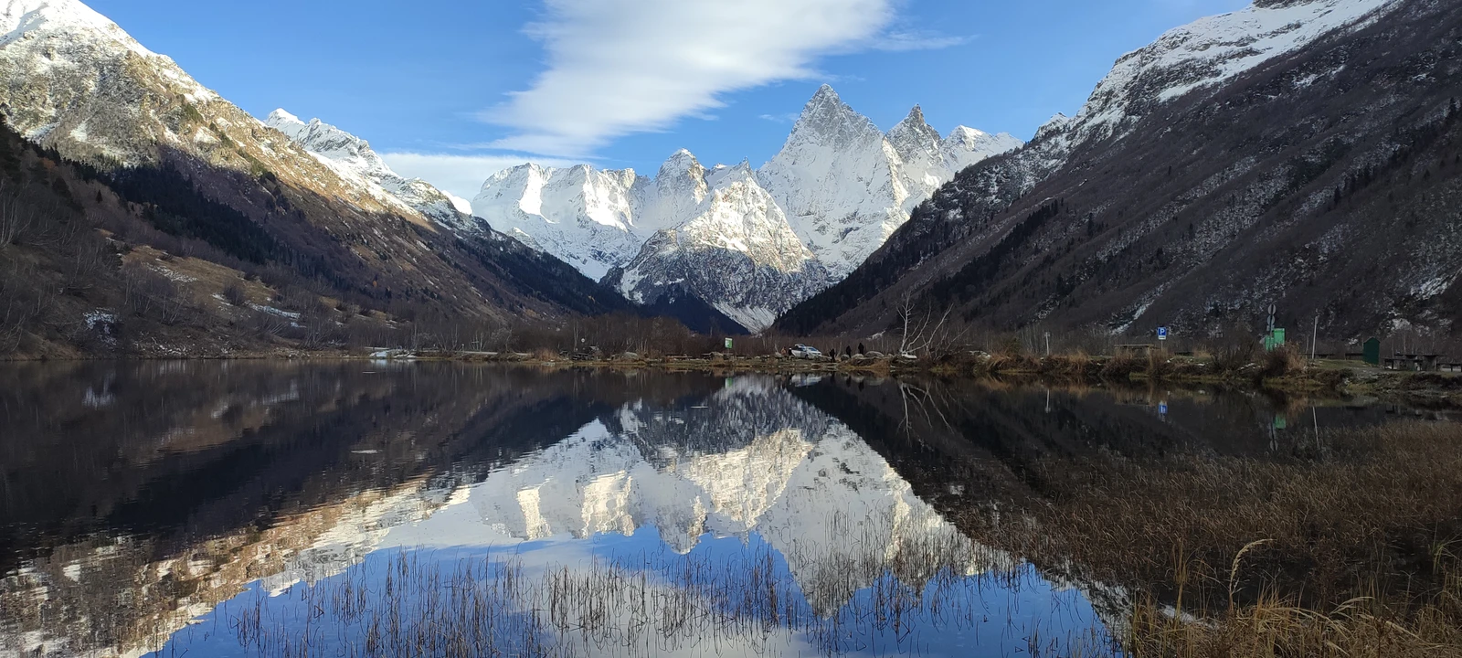 Мы прокатимся по невероятно красивой дороге, ведущей к снежным пикам курорта Домбай. По пути вы увидите отвесные скалы, причудливые Сырные пещеры и стремительные реки с бирюзовой водой. Искупаетесь в высокогорном озере с видом на исполинские горы и посетите храм 10 века. Подниметесь по канатной дороге до высоты 3200 метров и отведаете домашнюю аланскую кухню.