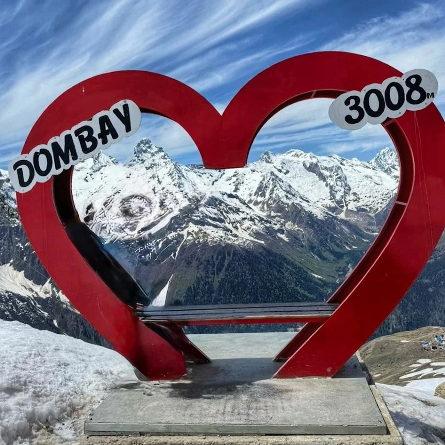 - Посёлок Домбай — место назначения! В свободное время вы сможете подняться на канатной дороге на высоту 3200 метров, полюбоваться видами и местной достопримечательностью — гостиничным домиком «Тарелка» на горе Мусса-Ачитара