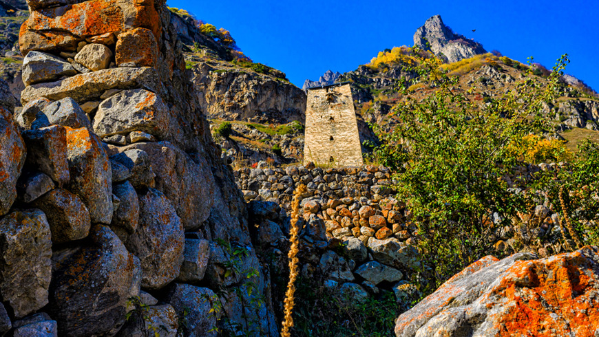 В завершение поездки мы отправимся к развалинам средневековых аулов. Здесь вы сможете прогуляться и узнать печальную историю когда-то оживленных селений. Остановимся у древних каменных стражей — сторожевых башен Аббаевых и Амирхановых, чтобы сделать фото и насладиться открывающимися видами.