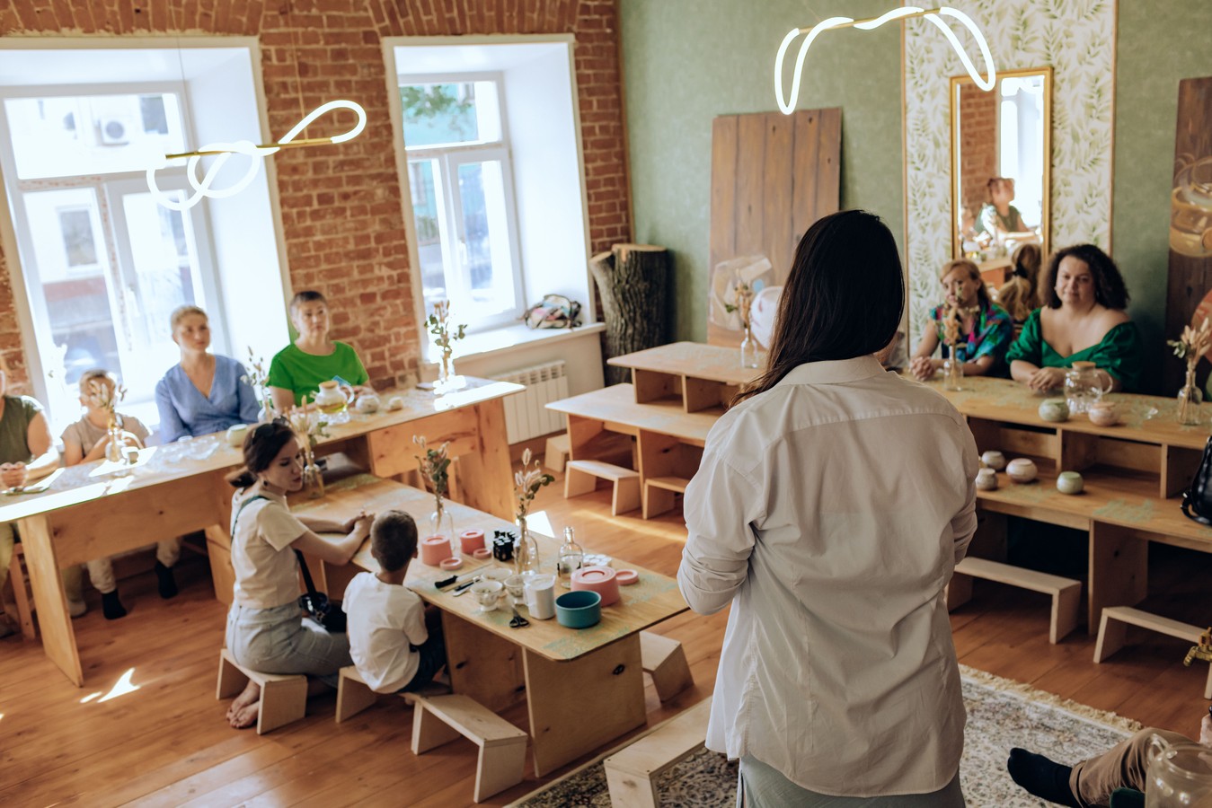 Приглашаем в уютное арт-пространство с атмосферой летнего леса. Вы попьёте чай с сухофруктами за деревянными столами, погрузитесь в магию ароматов и текстур натуральных масел, загадаете заветное желание и создадите уникальную свечу. Намерение сбудется, а свеча будет украшать ваш дом и наполнять его волшебным ароматом.