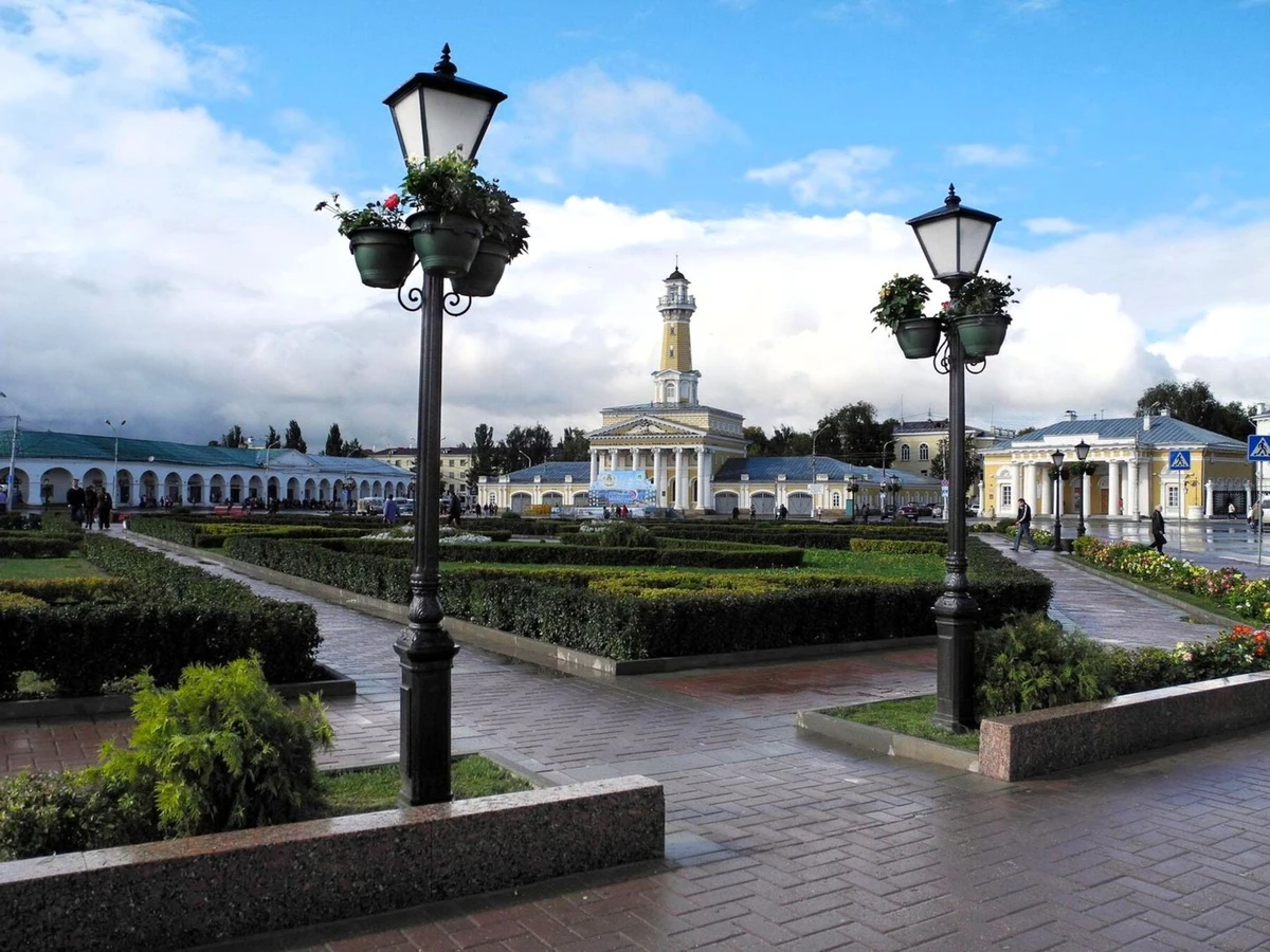 Сусанинская площадь — историческое сердце города с радиальной планировкой 18 века, памятником Ивану Сусанину и зданиями эпохи классицизма.