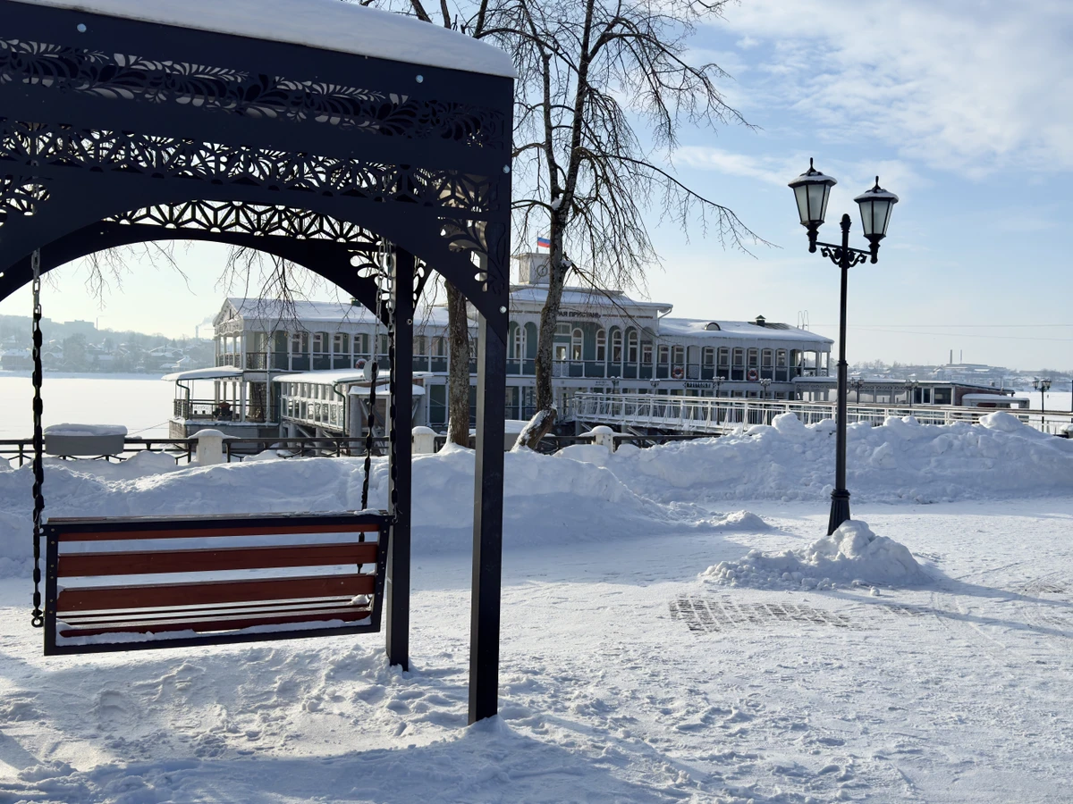 На набережной Волги в центре города.