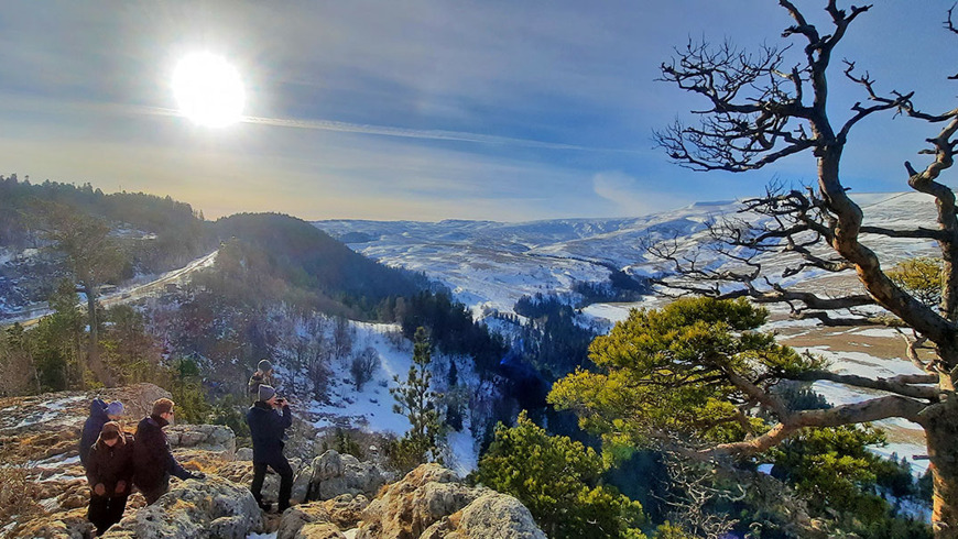 Зимний тур предполагает купание в горячих источниках Адыгеи на Новый год, увлекательные походы по горам, треккинг к застывшим, хрустальным водопадам, посещение горнолыжного курорта. Треккинги относительно лёгкие, доступные даже неподготовленным туристам.