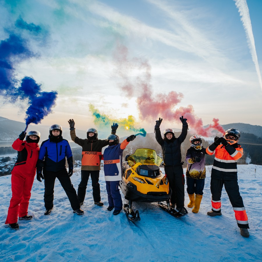 - В стоимость включено: аренда снегохода, услуги гида-инструктора, чай и горячее питание, экипировка (балаклава, защитный шлем, тёплые сапоги, перчатки)