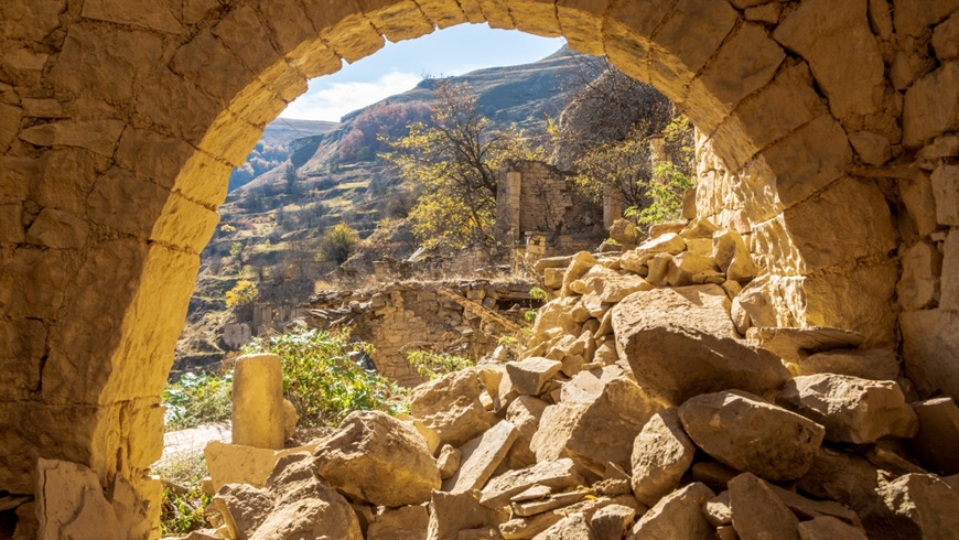 Дальше наш путь лежит в одно из древнейших поселений в Республике Дагестан. Гамсутль расположился в Гунибском районе Дагестана, на высоте 1500 метров над уровнем моря. В настоящий момент является заброшенным. Аул-призрак уникален необычной архитектурой, схожей с городом Мачу-Пикчу в Перу.