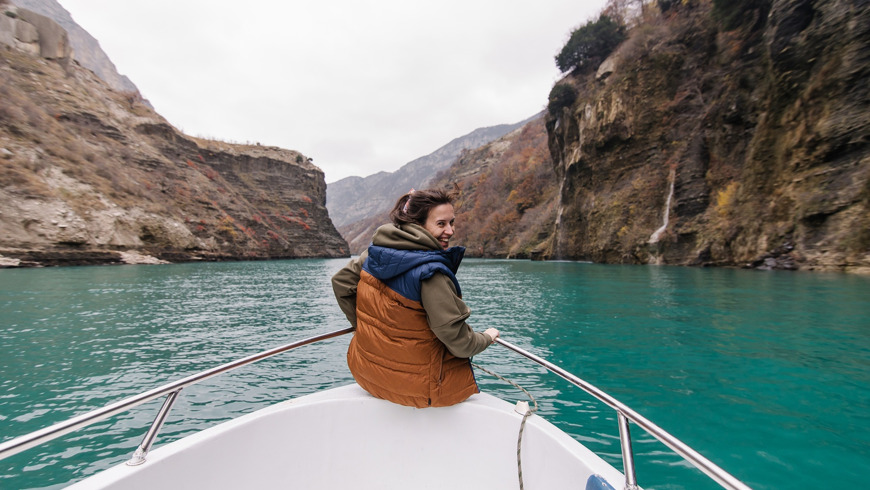 Сулакский каньон — самая захватывающая достопримечательность горного Дагестана. На один день мы оставим Махачкалу и отправимся на изучение местных природных красот. Бирюзовый каньон Сулакский каньон — один из самых глубоких каньонов мира, протяженностью 53 километра. Мы полюбуемся на него с разных точек. Остановимся у Чиркейского водохранилища для эффектных фото, затем спустимся к селу Зубутли: нас ждет прогулка на катере по извилистой бирюзовой реке Сулак.