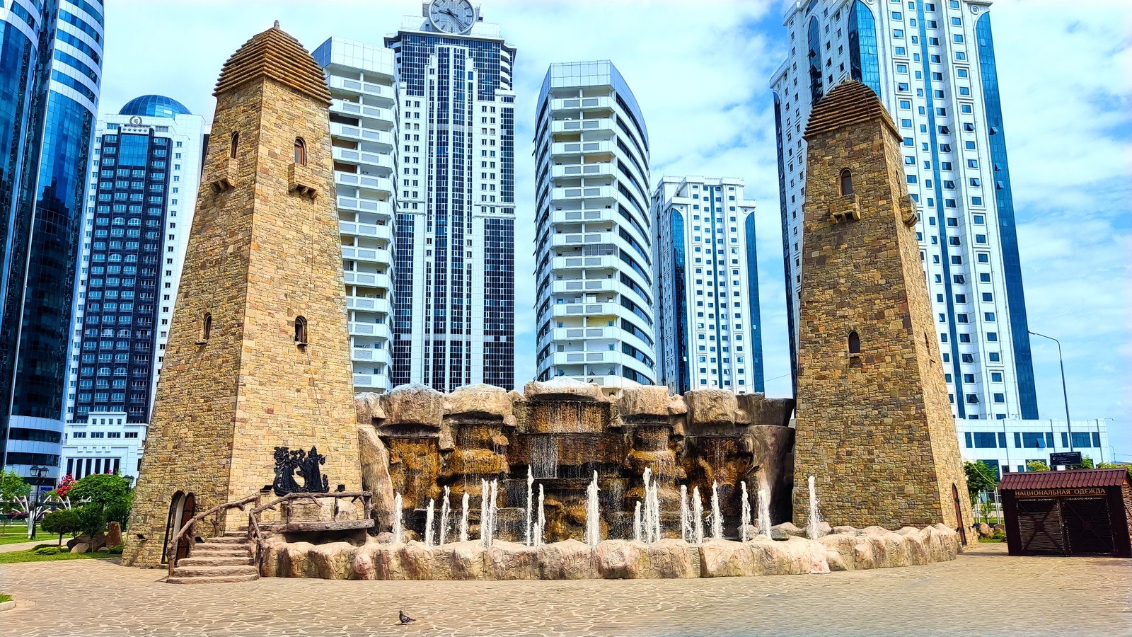 - Следующая остановка — деловой центр города «Грозный-Сити», построенный в футуристическом стиле. Он состоит из нескольких небоскрёбов, а наша цель — смотровая площадка на высоте 145 м на крыше 32-этажного здания, откуда вся чеченская столица будет видна как на ладони.