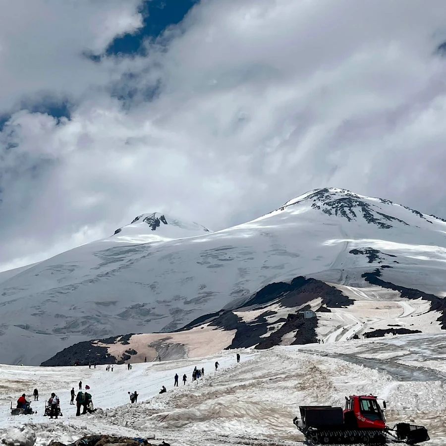 - Подъём к облакам. По канатной дороге вы доедете до станции «Мир» (3500 м) и лагеря альпинистов (3900 м). Почувствуете пьянящий воздух гор, окинете взглядом приэльбрусские красоты и, конечно, полюбуетесь главным исполином.
