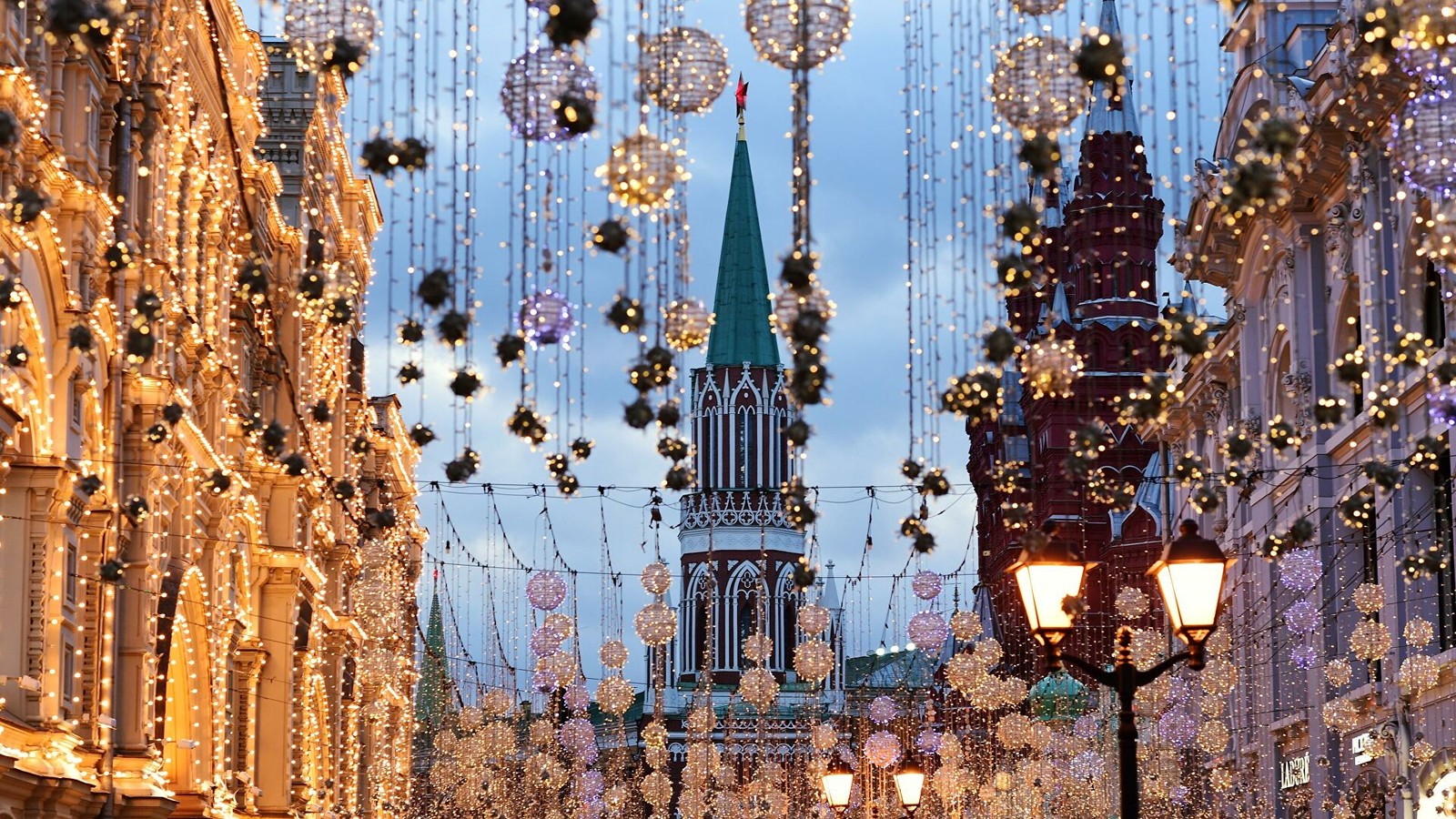 - Украшенные иллюминацией Садовое кольцо и набережные Москвы-реки