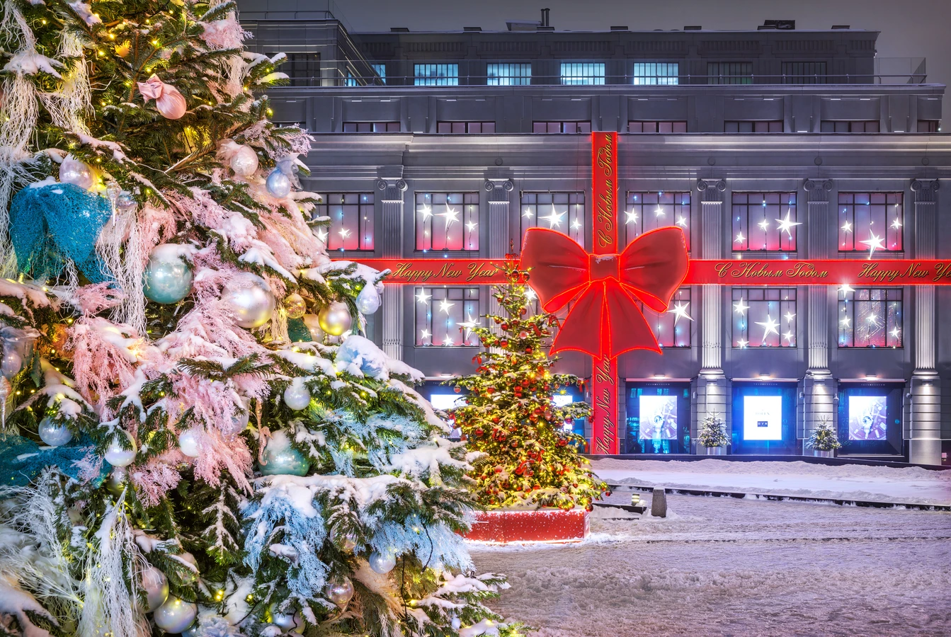 ГУМ, ЦУМ и Петровский пассаж. Мы посетим все эти роскошные магазины и получим эстетическое наслаждение от оформления интерьеров и витрин. Прогуляемся по самому большому пассажу в Европе. Зарядимся новогодним настроением и полюбуемся огнями ёлок. А их на нашем пути будет немало.