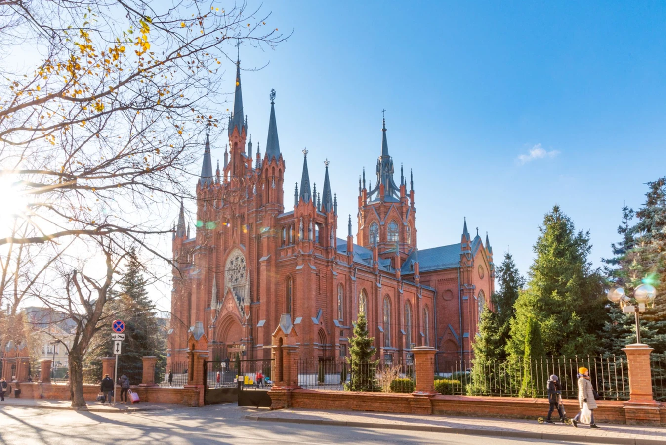 Собор Непорочного Зачатия. Главный католический храм России и крупнейший неоготический костёл страны. Высочайшие шпили (62 м), орган из Швейцарии и впечатляющие своды — тот самый «московский Нотр-Дам».