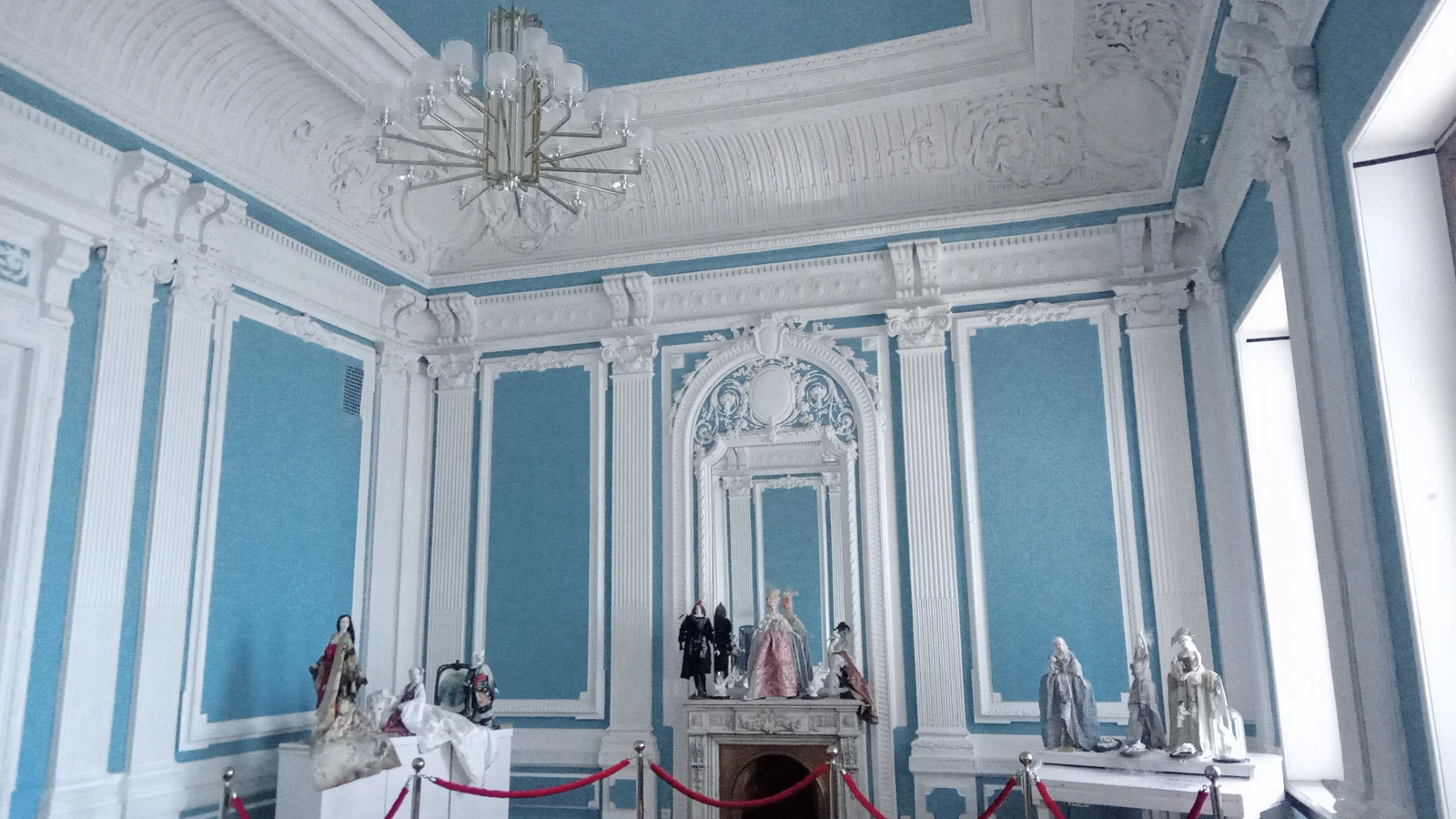 - Фасад особняка на реставрации, но мы увидим изумительные подлинные интерьеры 19 века