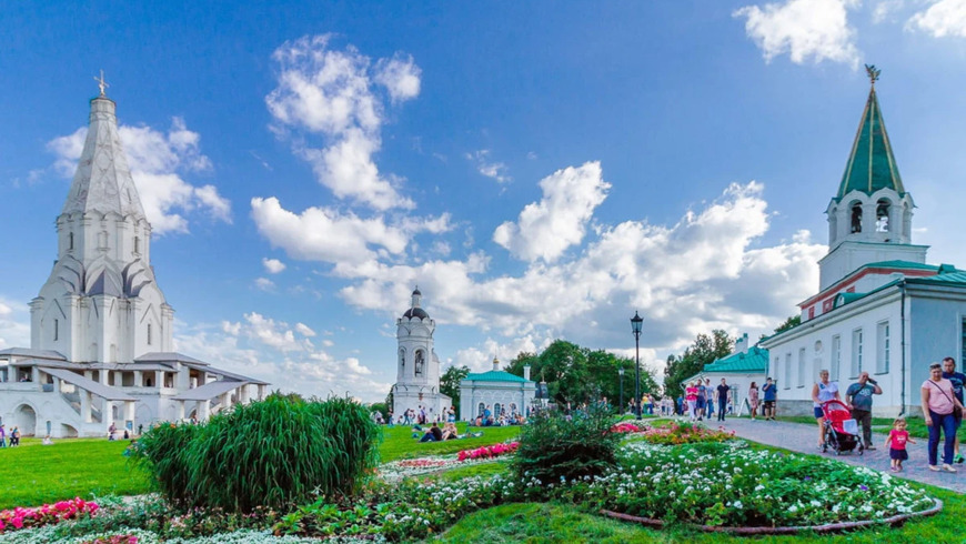 Экскурсия по музею-заповеднику Коломенское с осмотром церкви Вознесения, домика Петра I, Голосова оврага и древних камней. Знакомство с историей царской резиденции и местными легендами.