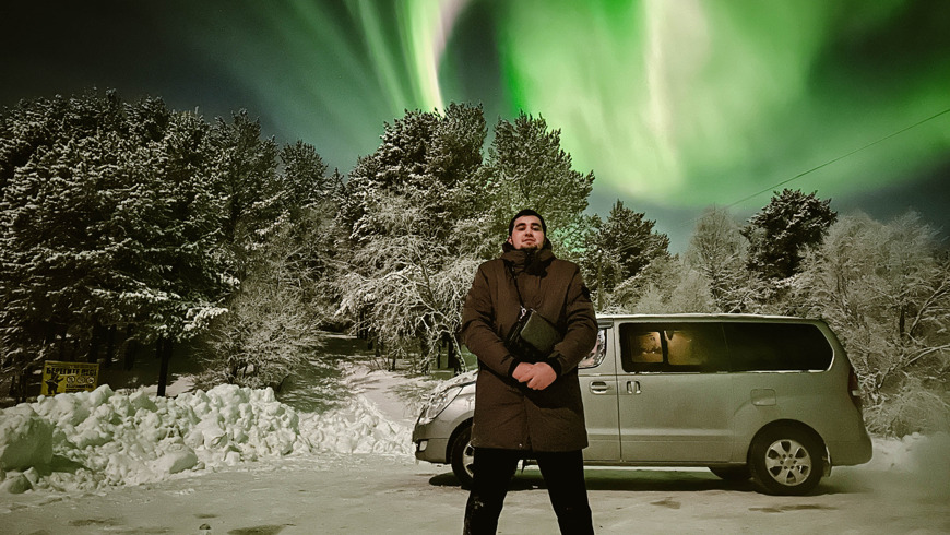 - "Трансфер, услуги гида, поиск северного сияния, анализ метеоданных и данных магнитометров, услуги фотографа"