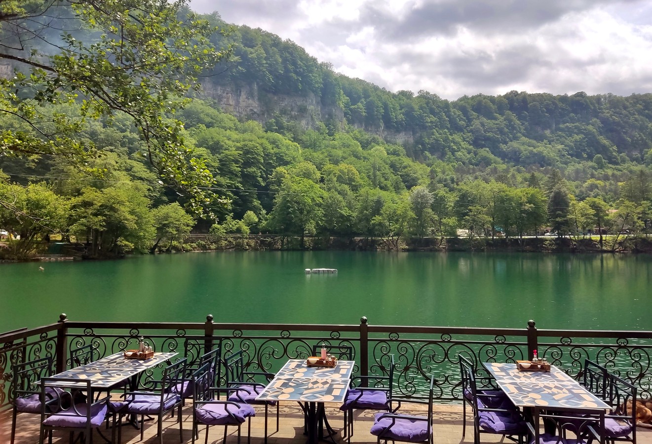 Обед в кафе с видом на горы. Вы попробуете национальное блюдо балкарцев — хычины (лепёшки с сыром и картошкой).