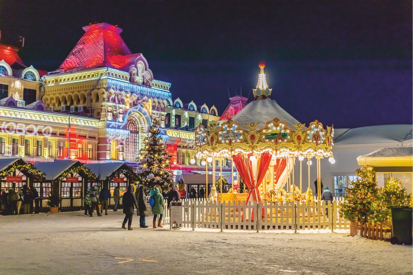 Праздничная ёлка и золотые шары, новогодний базар и каток, украшенная огнями ярмарочная карусель — всё это ждёт нас на прогулке по центру Нижнего. Главная ярмарочная площадь порадует театрализованными представлениями, вкусными угощениями и ароматным чаем. А секретные тропки — неожиданными открытиями.