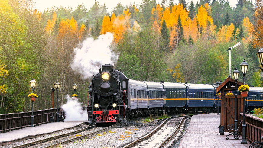 Обратно в город Сортавала вы отправитесь на уникальном транспорте – единственном в России ежедневном поезде с самым настоящим паровозом во главе. Вагоны Рускеальского экспресса оформлены в стиле начала XX века – это станет самым настоящим путешествием во времени.