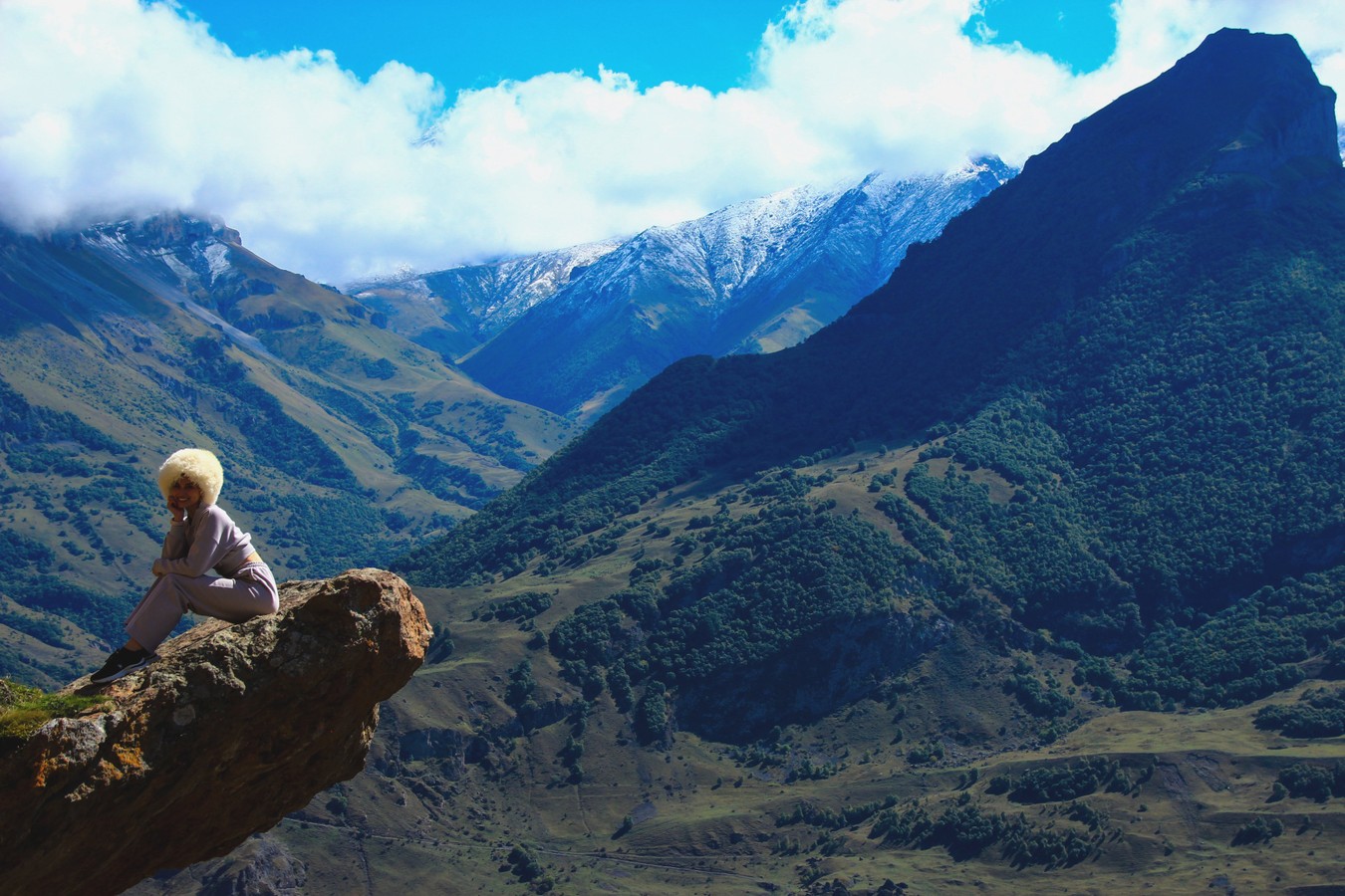 Безенгийский Язык Тролля. А у вас есть фото с высоты 2600 метров на краю скального выступа с панорамой горных хребтов? Нет!? Теперь будет! Равнодушным и без эмоций отсюда не уезжает никто.