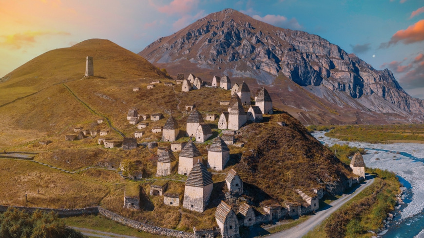 • «город мертвых» Даргавс — отправимся в знаменитый некрополь, состоящий почти из сотни склепов, раскинувшихся на живописном холме в окружении скал и горных вершин. На территории историко-архитектурного комплекса вы узнаете о древних традициях захоронений в горных селениях Осетии;