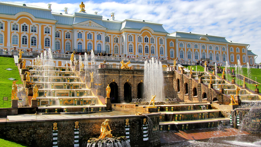 - В Большом дворце: Парадные залы, Тронный зал, картинные галереи, личные покои императоров и императриц, Чесменский зал, Дубовый кабинет Петра I. В Нижнем парке: Большой каскад, фонтан “Самсон, разрывающий пасть льва”, фонтаны-шутихи, Морской канал, Шахматную гору, Римские фонтаны.