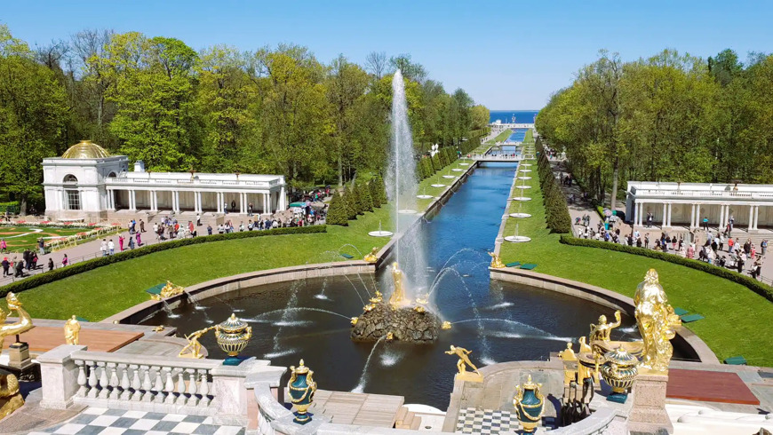 - На экскурсии вы увидите следующие основные места: Большой каскад: Главная достопримечательность Нижнего парка, состоящая из множества фонтанов, скульптур и барельефов. Фонтан “Самсон, разрывающий пасть льва”: Самый известный и узнаваемый фонтан Петергофа, символизирующий победу России над Швецией в Полтавской битве. Фонтаны-шутихи (или “водяные потехи”): Серия забавных фонтанов, которые неожиданно обливают посетителей водой. Шахматная гора (каскад “Драконы”): Каскад в виде шахматной доски с расположенными по бокам фигурами драконов. Морской канал: Прямой канал, соединяющий Большой дворец с Финским заливом, служащий для парадного прибытия гостей по воде. Римские фонтаны: Два одинаковых фонтана, расположенных по обе стороны от Морского канала. Фонтан “Солнце”: Фонтан, струи которого образуют подобие солнечных лучей. Воронихинские колоннады: Две симметричные колоннады, расположенные вдоль Морского канала. Дворцовый комплекс (снаружи): Экскурсия сосредотачивается на фонтанах, но вы увидите Большой дворец снаружи и узнаете его историю.