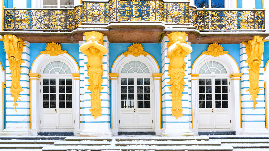 - В Екатерининском дворце: Янтарную комнату, парадную лестницу, Большой зал, картинные галереи, личные покои императриц.